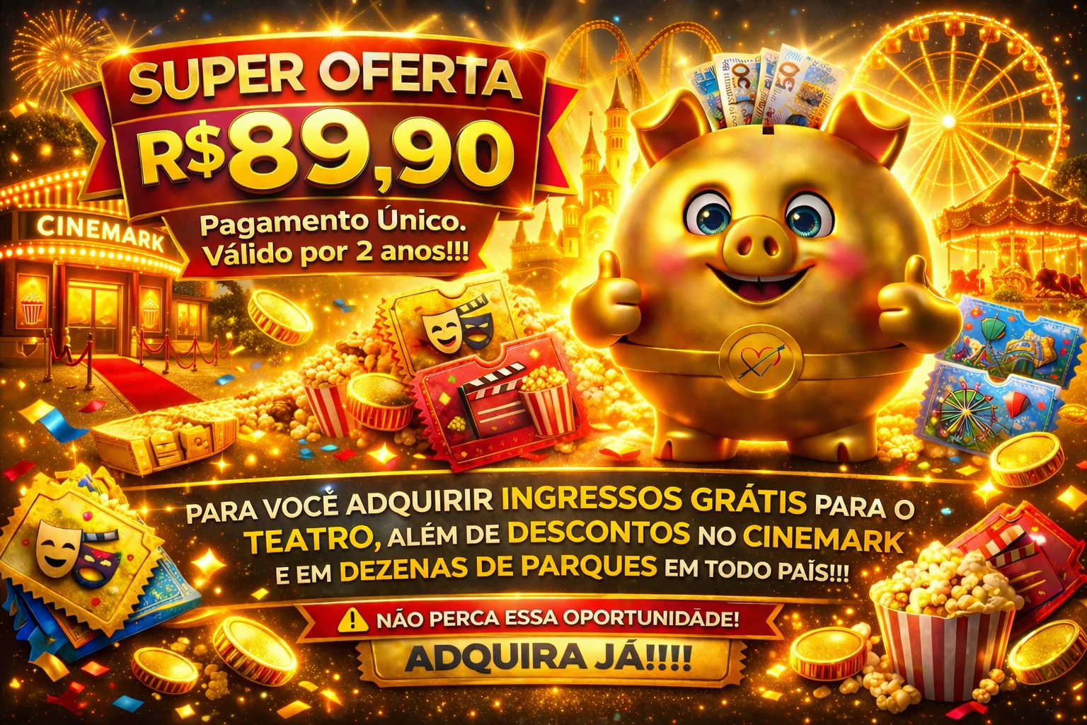 Espetáculos teatrais grátis e com desconto de 50% para seus acompanhantes. Cinemas e parques com as melhores promoções para toda a sua família!!!